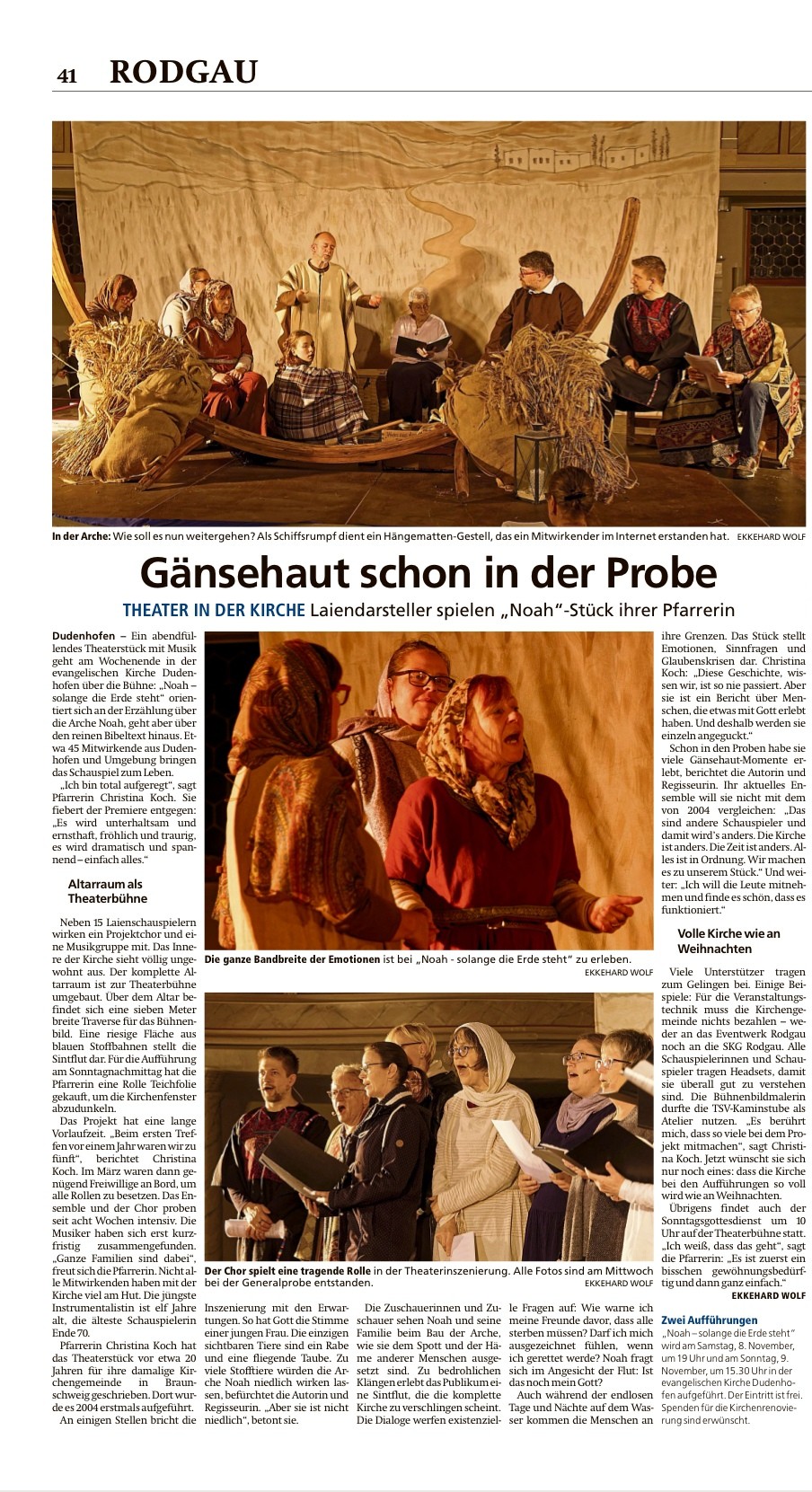 Pressehinweis: Theater-Stück NOAH: „Gänsehaut schon in der Probe“ (Beitrag von Ekkehard Wolf in der Offenbach-Post 07.11.2025), „Evangelische Gemeinde Dudenhofen gründet Förderverein“ (Beitrag von Matthias Goldhammer in der Offenbach-Post 06.09.2025); „Wo die Kirche mitten im Dorf steht“: Interview von Ekkehard Wolf (Offenbach-Post) mit Pfarrerin Christina Koch vom 7. Februar 2025.
